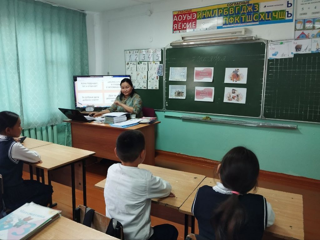 Педагог-библиотекарь школы Салбак Хеймер-ооловна провела акцию с учащимися » Читаем вместе»