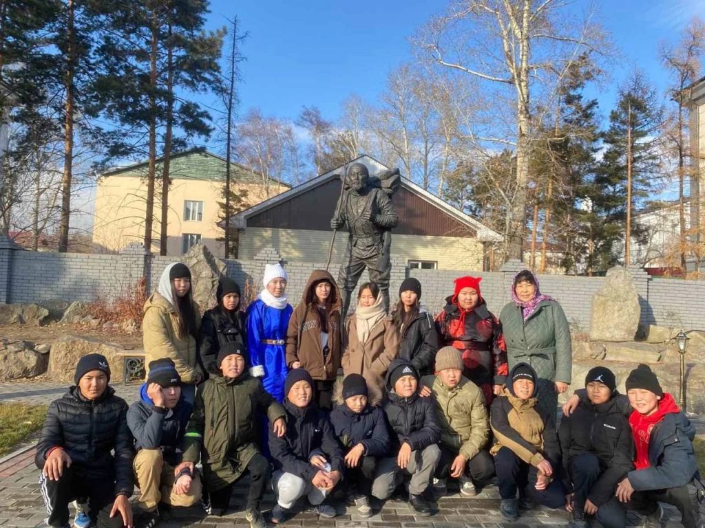 Учащиеся 7 а класса МБОУ Ээрбекской СОШ им.О.К.Оолака во время экскурсии по достопримечательностям г. Кызыл пешим маршрутом посетитили площадку им.Максима Мунзука по роли Дерсу Узала. Рядом с памятниками оборудована терраса для прогулок, где есть информационные таблички о заслугах киноактера Мунзука.
