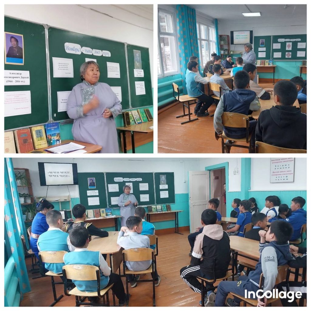 Среди учащихся 7- ых классов, учителем родного языка и литературы Сенги О. К. проведен конкурс » Чечен менде, чечек черде» посвященный ко дню тувинского языка, а также выставлены книги писателя-юбиляра Салима Сазыговича Сурун-оола.