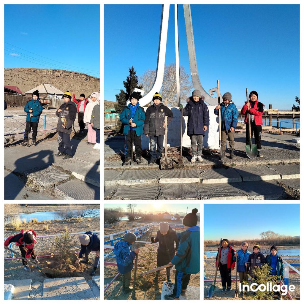 Хранители истории движения первых 02 ноября 2024 года учащиеся 4а, б класса Ээрбекской средней школы им. О. К. Оолака вместе с классными руководителями Лопсан Ч. А. и Ширап А. О. дружно очистили мусор и сажали саженцы вокруг обелиска Славы добровольцев-земляков участвовавших Великой Отечественной войне.